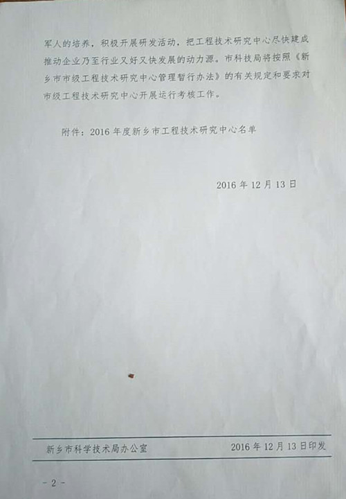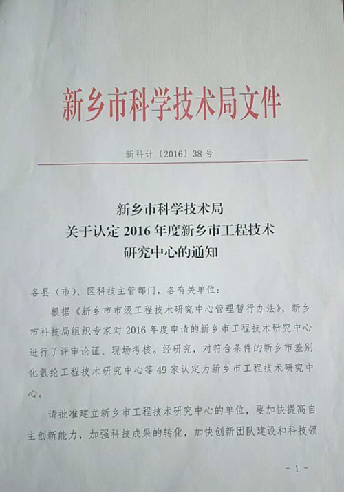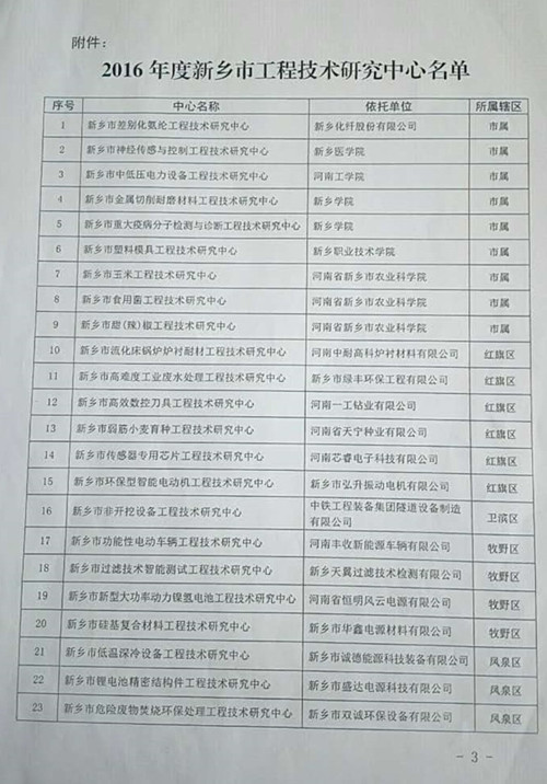 新鄉(xiāng)市科學技術(shù)局——關(guān)于認定2016年度新鄉(xiāng)市工程技術(shù)研究中心的通知